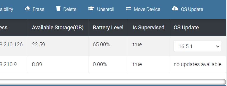 This action allows you to perform the OS update on the device either at a scheduled time or on demand. This will update the device software to the latest version available from Apple. You can use this to keep your devices up-to-date and secure with the latest features and fixes.